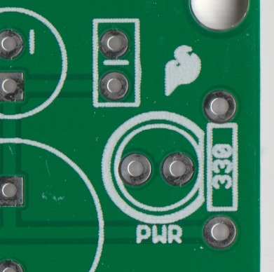 在下面的示例中,綠色焊接掩模應用于PCB板的大部分,覆蓋小的跡線,但留下銀環和SMD焊盤暴露,以便它們可以焊接到。