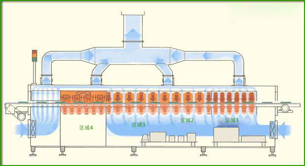 回流焊是一種焊接方法,其中將元件安裝在焊點(diǎn)上(或以糊狀形式)的電路板,或預(yù)制件),通過熔爐,焊料在熔爐中熔化并形成焊點(diǎn)。批處理爐(室式爐)可以一次裝載一批印刷電路板。操作員將給定批次板的溫度曲線輸入到爐控制器中,這會(huì)根據(jù)時(shí)間改變螺旋的加熱程度。烘箱氣氛也得到了很好的控制,包括使用真空。回流箱式爐有利于小批量生產(chǎn)、試點(diǎn)項(xiàng)目以及必須仔細(xì)控制爐溫分布和氣氛的場(chǎng)合。第二種類型的熔爐內(nèi)置于技術(shù)生產(chǎn)線中。... 帶有未焊接元件的 PCB 從一端連續(xù)送入回流焊爐,并在另一端排出已經(jīng)焊接的元件。因此,內(nèi)置烤箱可以是普通傳送帶的一部分。他們從自動(dòng)機(jī)器沿傳送帶接收付款,無需操作員干預(yù)。沿烘箱長度的各個(gè)區(qū)域的溫度和傳送帶的速度決定了回流焊接的溫度曲線。圖 1 顯示了一個(gè)四區(qū)回流焊爐的例子。
